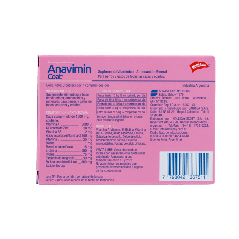 Anavimin Biomodulador Perros y Gatos es un suplemento veterinario formulado para apoyar el sistema inmunológico y mejorar la respuesta del organismo frente a procesos infecciosos, inflamatorios o estados de debilidad. Actúa como modulador de las defensas, ayudando a optimizar la recuperación, aumentar la resistencia y mantener el equilibrio inmunitario en perros y gatos de todas las edades. Es un apoyo estratégico en tratamientos médicos, convalecencias y situaciones de estrés fisiológico, siempre bajo recomendación veterinaria.