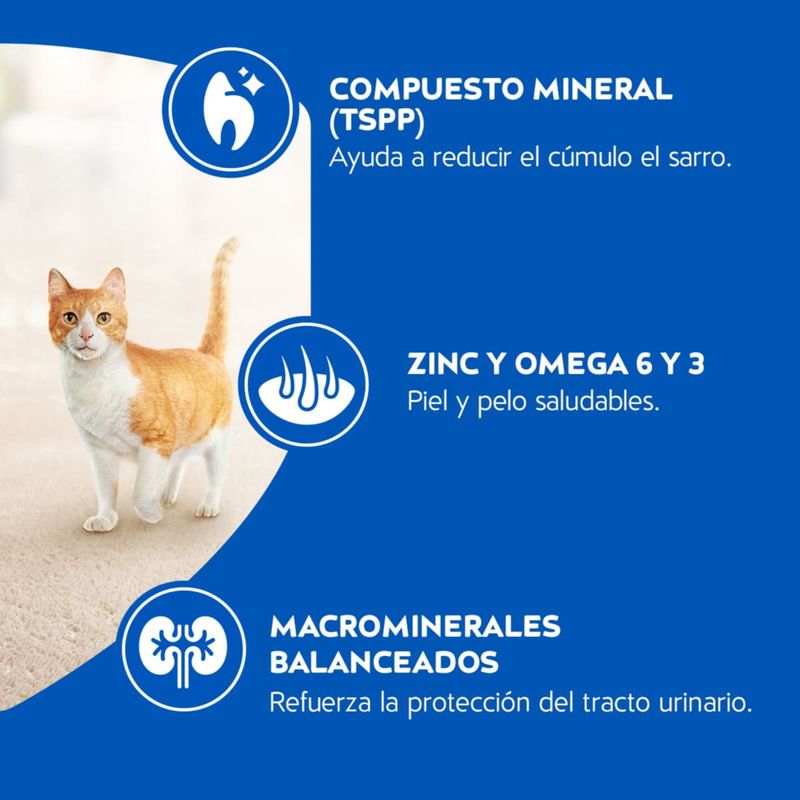 Cat Chow Comida Para Gatos Adultos Sabor Pescado FortiDefense es un alimento 100% completo y balanceado, formulado para fortalecer la salud integral de tu gato adulto. Enriquecido con Defense Plus®, una combinación exclusiva de prebiótico natural, antioxidantes, vitaminas y minerales, ayuda a reforzar su sistema inmune. Contiene zinc, Omega 6 y 3 para una piel y pelaje saludables, además de TSPP para reducir el sarro y macro minerales que promueven un pH urinario adecuado. Libre de colorantes y sabores artificiales, cuida su salud mientras disfruta de un sabor delicioso.