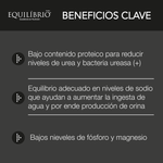 Equilibrio Veterinary Alimento Para Perro Urinary es una dieta veterinaria formulada para apoyar la salud del tracto urinario en perros con predisposición a cálculos o trastornos urinarios. Su fórmula ayuda a controlar el pH de la orina y el equilibrio de minerales, contribuyendo a la disolución y reducción de la formación de cristales urinarios. Incorpora ingredientes de alta digestibilidad y un perfil nutricional balanceado que favorece la hidratación y el correcto funcionamiento del sistema urinario. Es una solución nutricional especializada para el manejo a largo plazo bajo recomendación veterinaria.
