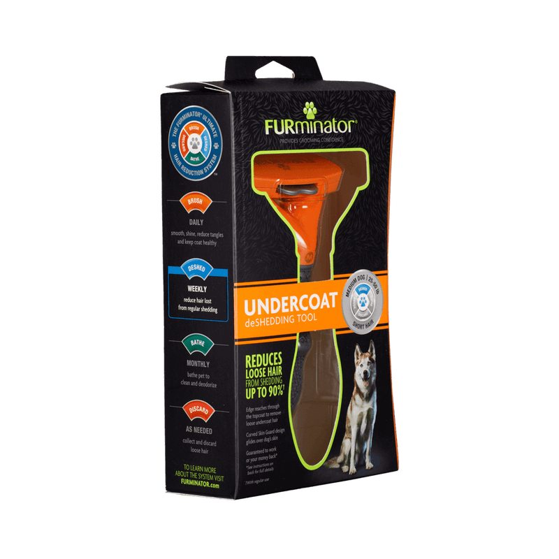 Furminator Desalanador Perro Mediano Pelo Corto es una herramienta de aseo profesional diseñada para reducir eficazmente la muda en perros de tamaño mediano con pelaje corto. Su borde de acero inoxidable llega al subpelo y elimina el pelo suelto sin dañar la capa superficial ni irritar la piel. Facilita el mantenimiento regular del pelaje, disminuye la cantidad de pelo en el hogar y contribuye a un manto más sano y manejable.