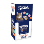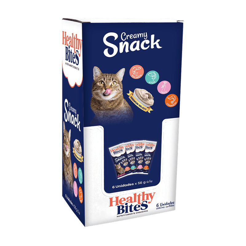 Healthy Bites Snack Cremoso Para Gato Surtido es un premio funcional de textura suave y alta palatabilidad con una mezcla de sabores que encanta a los gatos. Su formato cremoso facilita el consumo, lo hace ideal como recompensa diaria, complemento de medicación o incentivo durante el entrenamiento. Aporta variedad y sabor en porciones prácticas, estimulando el apetito sin comprometer la calidad de la dieta.
