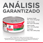 Hill's Alimento Húmedo Para Gatitos Liver y Chicken Science Diet está formulado para apoyar el crecimiento saludable durante las primeras etapas de vida. Su receta combina hígado y pollo de alta calidad, ofreciendo proteínas altamente digestibles que favorecen el desarrollo de músculos, órganos y tejidos. Enriquecido con DHA de aceite de pescado, contribuye al desarrollo del cerebro y la visión, mientras que su mezcla balanceada de vitaminas, minerales y antioxidantes fortalece el sistema inmunológico. Su textura húmeda mejora la hidratación y la palatabilidad, ideal para gatitos en transición al alimento sólido.