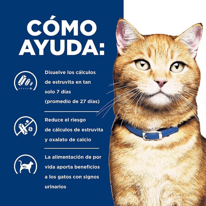 Hill's Alimento Húmedo para Gato Cuidado Urinario Prescription Diet C/D está formulado para el manejo nutricional de gatos adultos con afecciones del tracto urinario inferior. Su receta clínica ayuda a disolver cálculos de estruvita y a reducir su recurrencia, además de apoyar la disminución del riesgo de formación de oxalato de calcio. El control del pH urinario y de minerales clave contribuye a una vejiga más saludable. Su formato húmedo favorece una mayor ingesta de agua, apoyando la dilución urinaria y la hidratación diaria, con alta palatabilidad para una mejor adherencia al tratamiento.