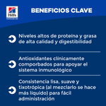 Hill's Alimento Húmedo Para Perros y Gatos en Recuperación Prescription Diet A/D es una fórmula terapéutica diseñada para apoyar la recuperación tras cirugías, enfermedades graves, pérdida de peso acelerada o periodos de convalecencia. Su mezcla hipercalórica y altamente digestible ofrece proteínas de alta calidad, antioxidantes y nutrientes esenciales que favorecen la cicatrización, fortalecen el sistema inmune y ayudan a restaurar masa corporal magra. Su textura suave y húmeda facilita la alimentación asistida con jeringa o cucharilla, garantizando ingesta adecuada incluso en mascotas con apetito reducido.