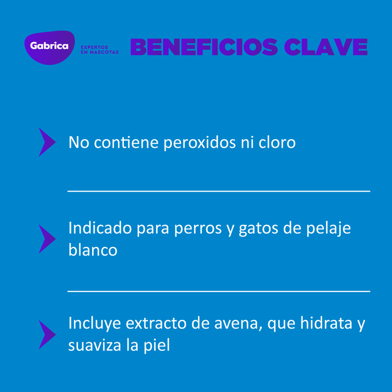 Hydra Shampoo Para Mascotas Whitening es un shampoo profesional diseñado para intensificar blancos y realzar tonos claros en perros y gatos. Su fórmula incorpora agentes ópticos que neutralizan el amarillamiento sin usar blanqueadores agresivos, logrando un acabado más brillante y uniforme. Limpia a profundidad, mejora la textura del pelaje y mantiene la suavidad sin resecar. Ideal para grooming profesional y para mantos blancos, plateados o crema que requieren precisión estética.
