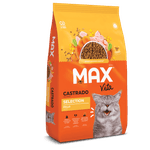 Max Vita Alimento Para Gato Adulto Castrado Selection Sabor Pollo es un alimento formulado para cubrir las necesidades nutricionales de gatos esterilizados. Su receta con pollo como proteína principal ayuda a mantener la masa muscular, controlar el peso y cuidar la salud urinaria. Incluye un balance óptimo de minerales, fibra y nutrientes esenciales que favorecen la digestión, el metabolismo y el bienestar general del gato adulto castrado.