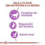 Este alimento combina proteínas de alta calidad, vitaminas y minerales para garantizar un estado óptimo de salud, adaptándose a las necesidades nutricionales de los gatos esterilizados senior.