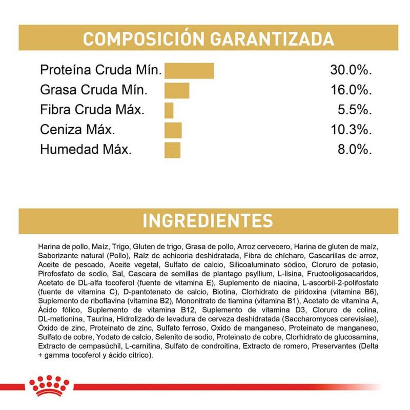 Su fórmula incluye proteínas altamente digestibles, ácidos grasos omega 3 y 6, además de taurina, que ayudan a cuidar el corazón, las articulaciones y el pelaje. El contenido mineral balanceado también promueve un tracto urinario sano.