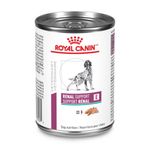 Royal Canin Veterinary Renal Support E es un alimento húmedo formulado especialmente para perros con insuficiencia renal crónica o aguda. Su receta ayuda a preservar la función renal mediante un contenido controlado de fósforo y proteínas de alta calidad, que reducen la carga sobre los riñones.